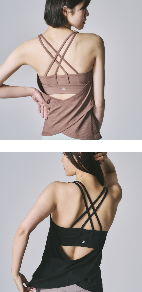 背中で交差する4本のラインが、肩甲骨周りをスッキリと美しく演出。