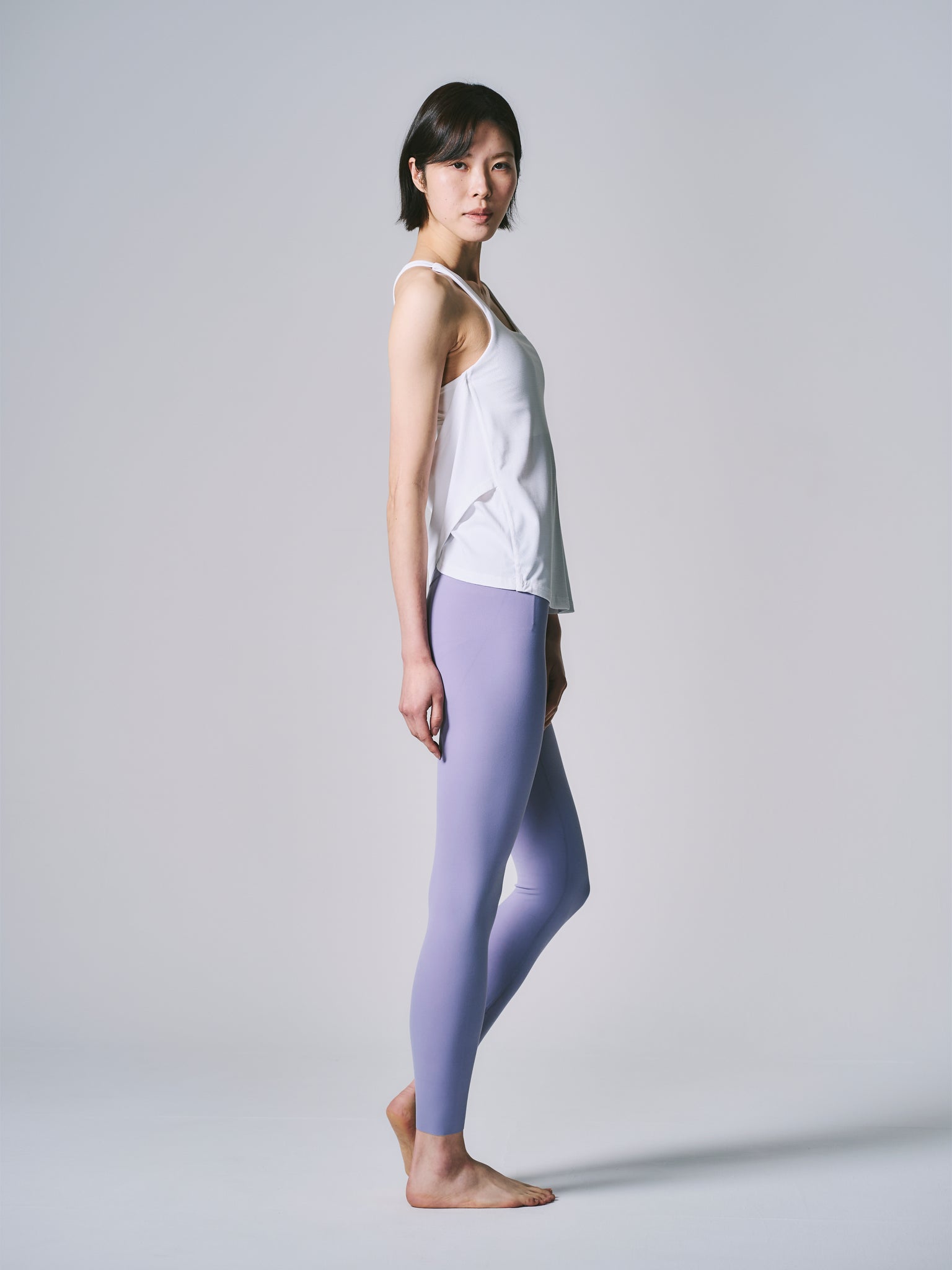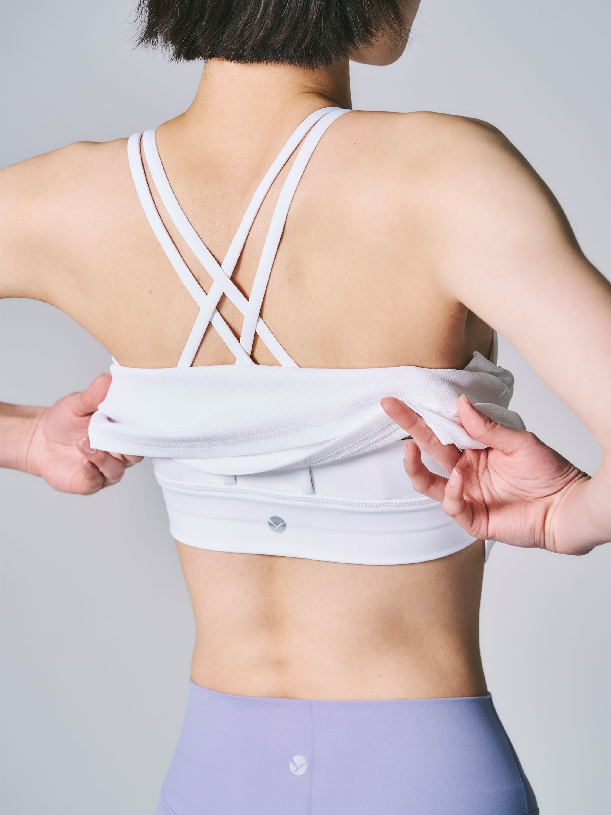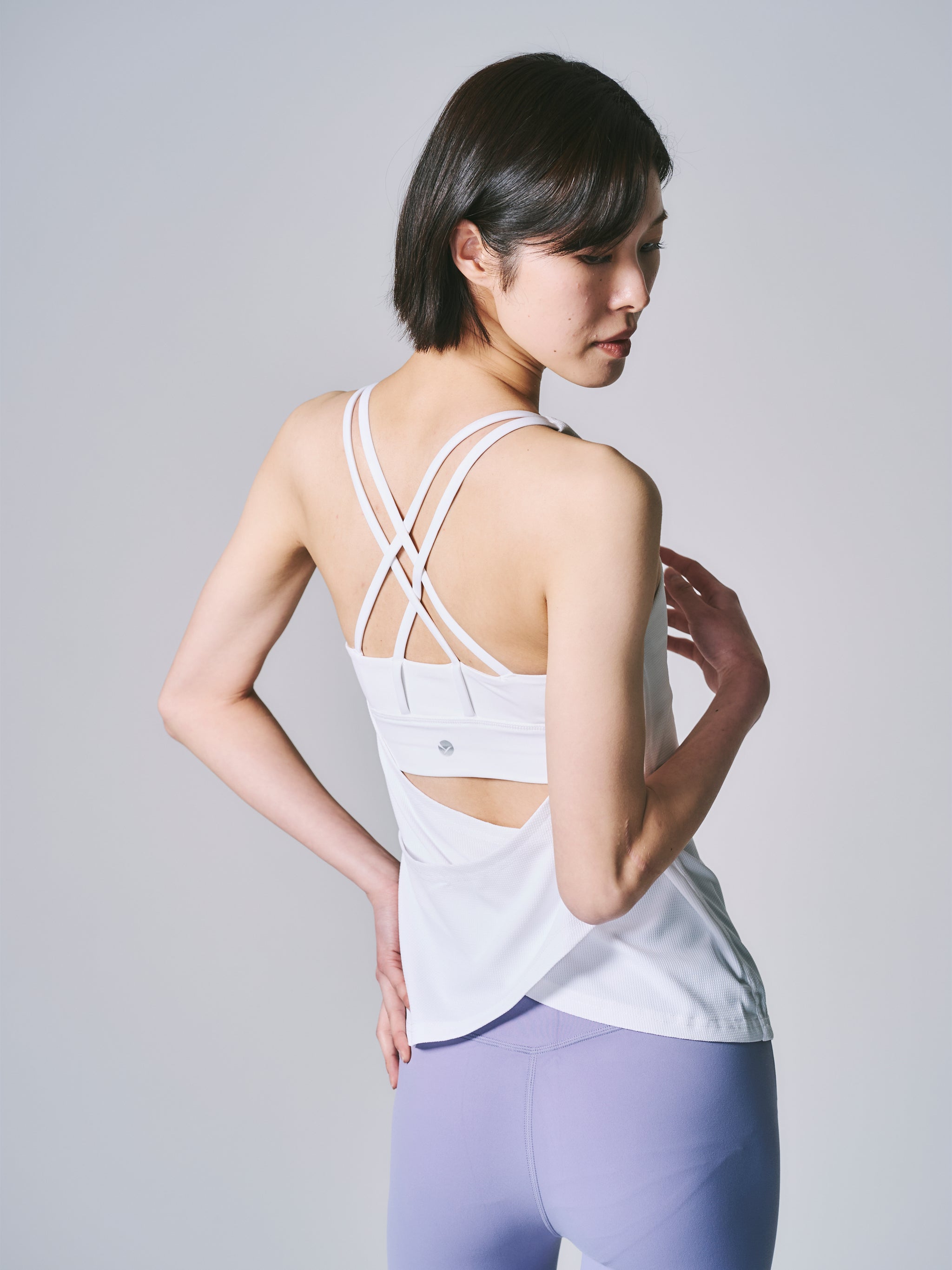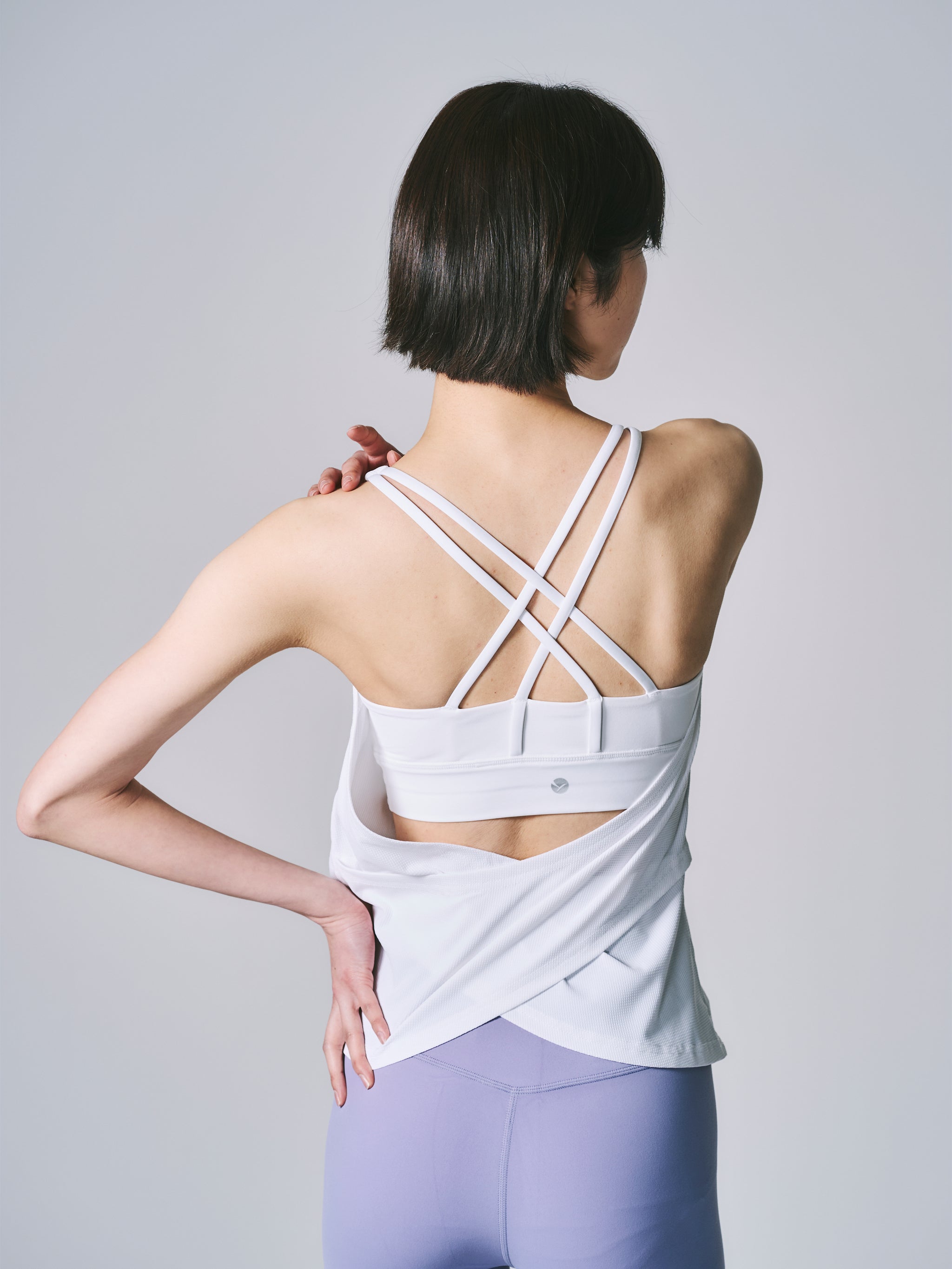 計算されたY字のラインが、肩甲骨の動きを美しく強調し、背中をよりスッキリと、しなやかに見せます。