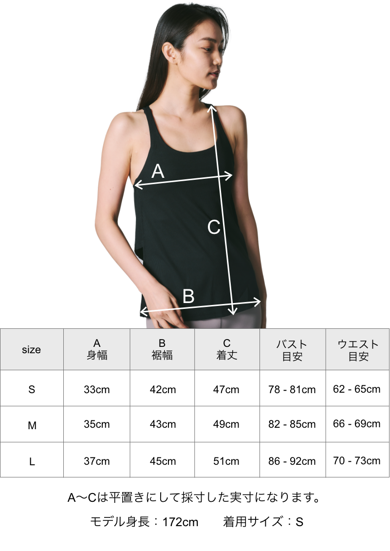 商品ページに記載されているサイズ表を必ず確認して、ご自身の体型と合うものを選びます。