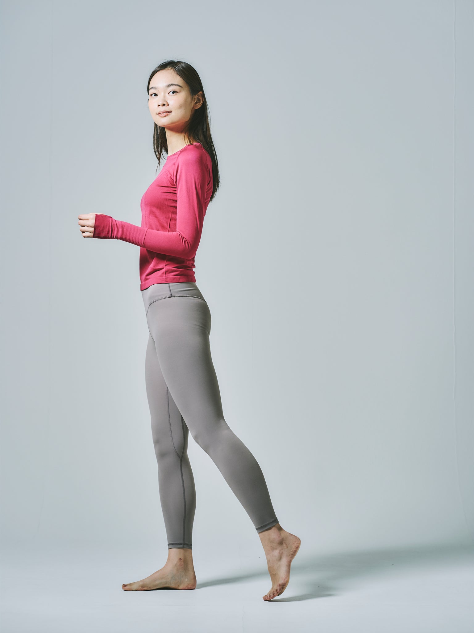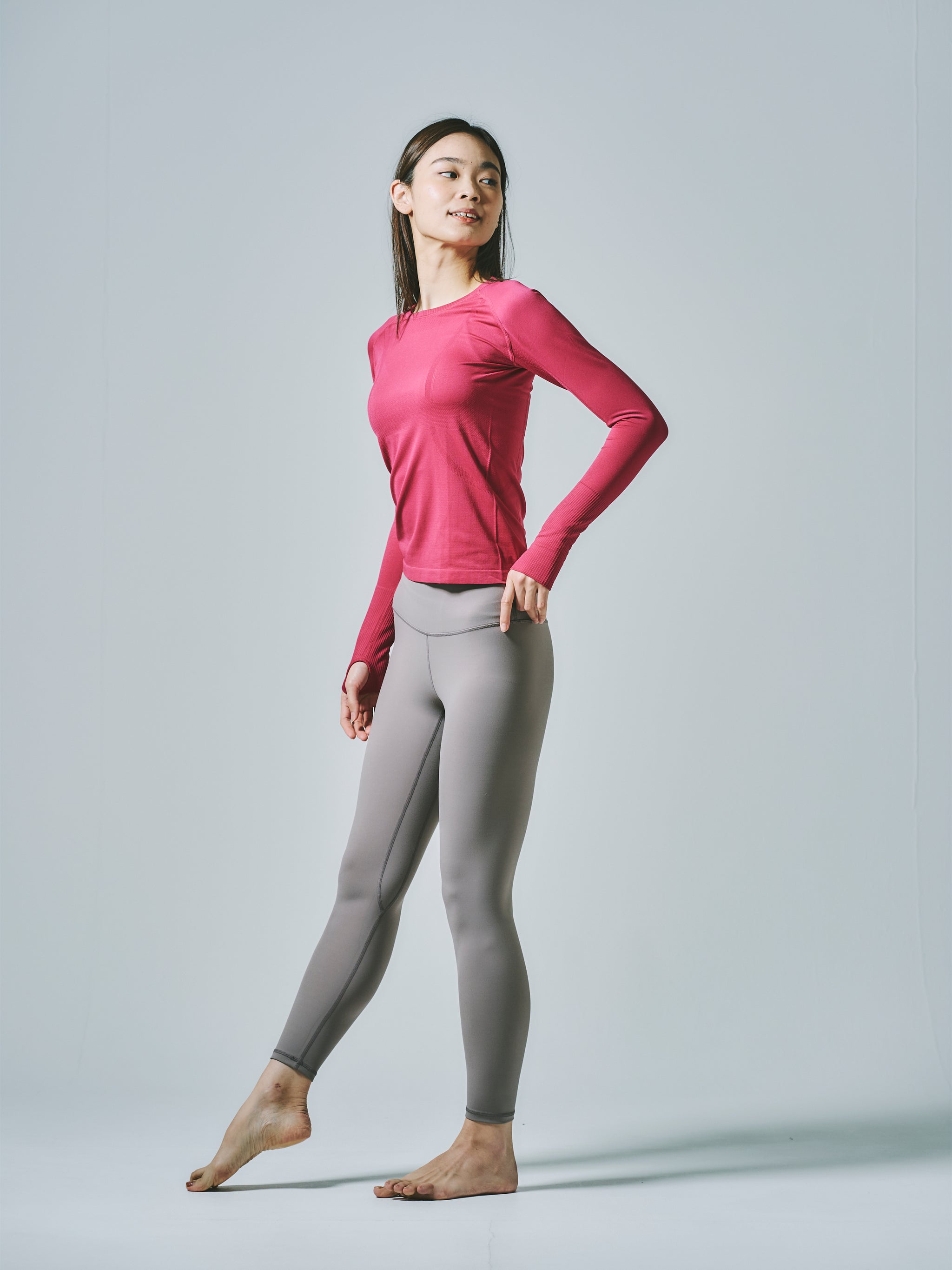 ヒトミ シームレス 長袖 トップス マゼンタ